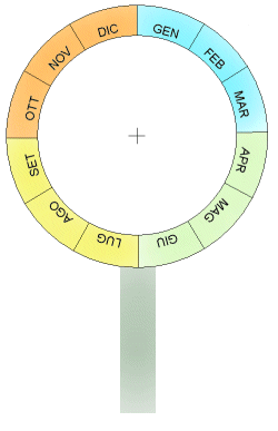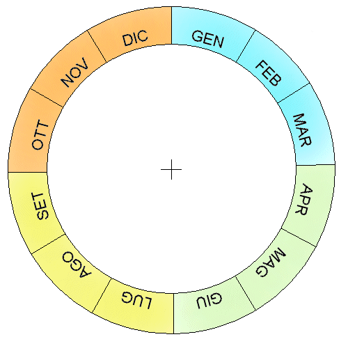 I mesi sono separati da un angolo pari al numero dei giorni che contengono. Dato che in 360o devono entrare