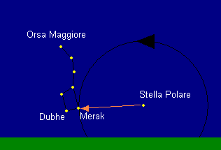 attraverso le due stelle Dubhe e Merak, si trova la Stella Polare.