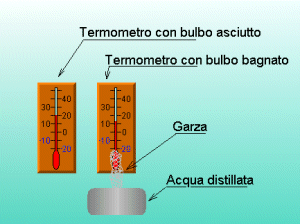 l'altro a bulbo umido ovvero con il bulbo a contatto con una garza bagnata e quindi misura una temperatura