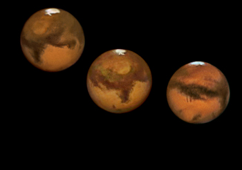 sempre sulla superficie simili a geyser[. Osservazioni da parte del Mars Global Surveyor manifestano un contrazione della calotta di ghiaccio a polo sud.