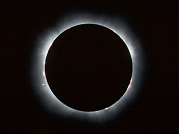 LE ECLISSI SOLARI HANNO SEMPRE ECCITATO L'INTERESSE DELL'UMANITA'. LA SUPERSTIZIONE HA ATTRIBUITO LORO SIGNIFICATI STRANI E TERRIBILI. GLI OSSERVATORI DILETTANTI ASPETTANO LE ECLISSI COME UN'OCCASIONE PER OSSERVARE CERTI FENOMENI SOLARI, COME LE PROTUBERANZE E LA CORONA CHE NORMALMENTE SONO INVISIBILI PERCHE' SOVRASTATI DALLA LUCE DELLA STELLA.