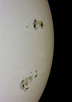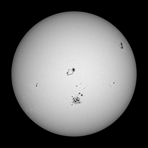 SULLA FOTOSFERA SOLARE SPESSO APPAIONO MACCHIE SCURE, ALCUNE COSI' GRANDI CHE SI POSSONO VEDERE ANCHE AD OCCHIO NUDO. SONO MUTAMENTI SUPERFICIALI DOVUTI A CAUSE PIU' PROFONDE. IL CENTRO DELLA MACCHIA O OMBRA, E' PIU' SCURO E CIRCONDATO DA UNA PENOMBRA, CHE SOVENTE NE RADDOPPIA LE DIMENSIONI. LE MACCHIE APPAIONO SCURE ESSENDO PIU' FREDDE DELLA SUPERFICIE CIRCOSTANTE. IL NUMERO DELLE MACCHIE VARIA; SE NE POSSONO SCORGERE POCHE IN UN ANNO E ANCHE 150 IN UN SOLO GIORNO, LA LORO PRESENZA VARIA SEGUENDO UN CICLO DI CIRCA 11 ANNI.