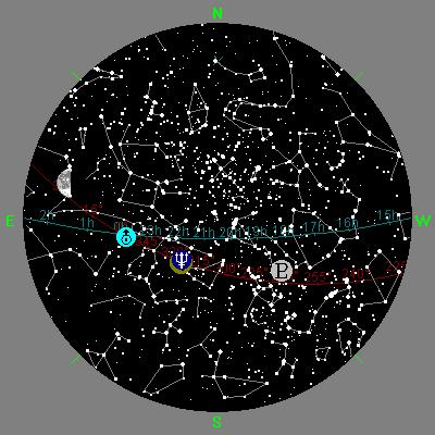 La mappa mostra l'aspetto del cielo notturno intorno alla mezzanotte del giorno 15