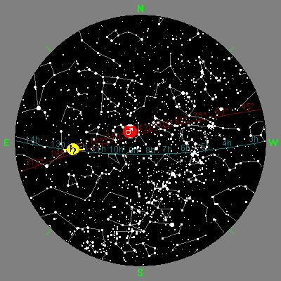 La mappa mostra l'aspetto del cielo notturno intorno alla mezzanotte del giorno 15