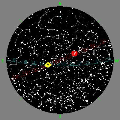 La mappa mostra l'aspetto del cielo notturno intorno alla mezzanotte del giorno 15