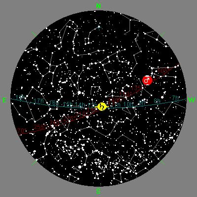 La mappa mostra l'aspetto del cielo notturno intorno alla mezzanotte del giorno 15