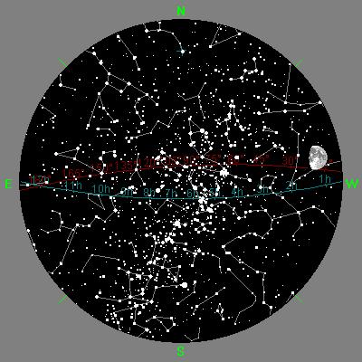 La mappa mostra l'aspetto del cielo notturno intorno alla mezzanotte del giorno 15