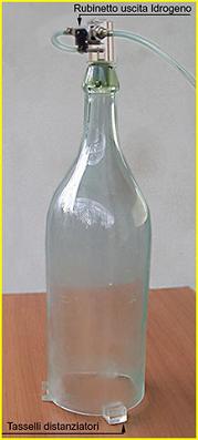 Nella parte superiore della bottiglia, va sistemato un cilindretto in Plexiglass con una estremità adattata al collo della bottiglia che serve da tappo a tenuta ermetica, incollato con resina epossidica.