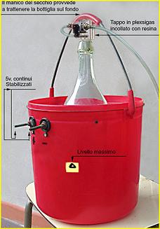 dell’aspirazione vicino alla pompa, il liquido contenuto nel secchio verrà risucchiato attraverso l’ipercamera salendo di livello all’interno della bottiglia stessa: quando il liquido arriverà