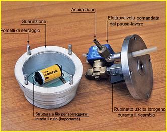 un altro tubicino porta l’Idrogeno al contenitore sottovuoto.