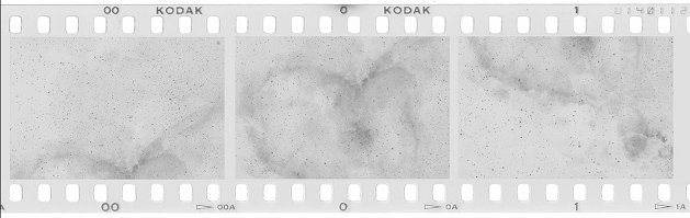 L’assorbimento complessivo di questa coppia di filtri è circa 4 stop. Pertanto, considerando l’ipersensibilizzazione raggiunta e l’apertura f/3.5, è risultata una posa di 45 minuti per ogni frame. Lo sviluppo è stato effettuato sempre con D19 diluito 1 a due a 20° per 7 minuti, ottenendo un contrasto di 2.6. L’inseguimento, come si vede dalla foto dello