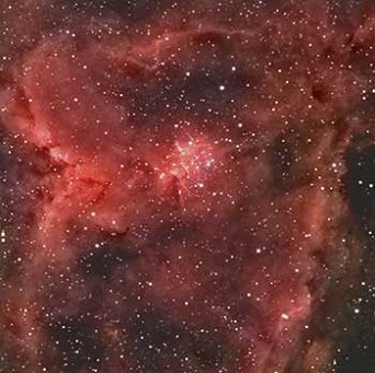 Conosciamola meglio: a circa 7000 anni luce di distanza, nella costellazione di Cassiopeia c'è un paio di ammassi aperti che si sono formati solamente alcuni milioni di anni fa. Facilmente visibili al binocolo o con un piccolo telescopio, questo ammasso doppio è uno degli oggetti maggiormente osservati. Ma a nord dell'ammasso doppio c'è un oggetto invisibile per la maggior parte dei telescopi. Si tratta della nebulosa IC1805, la nebulosa Cuore (detta anche Valentino). Si tratta di una gigantesca nube di gas e polveri che è una vera e propria nursery stellare. In pochi milioni di anni tutto il gas si estinguerà nel processo di formazione delle stelle.