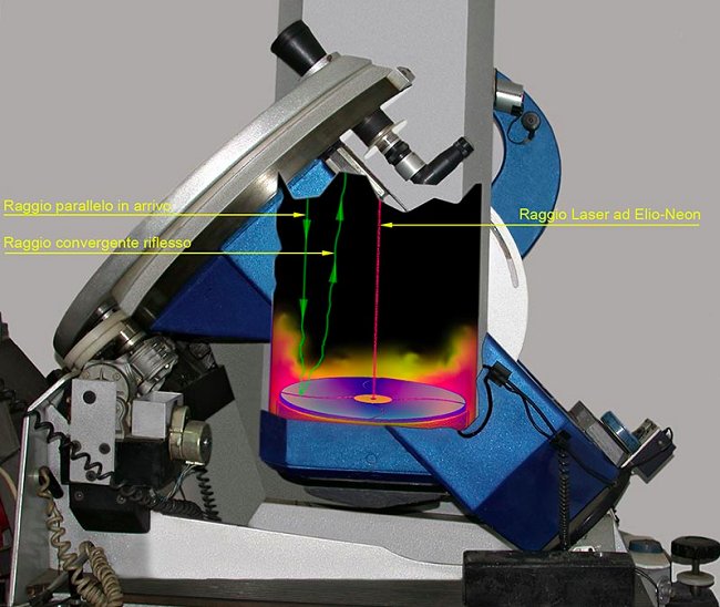 Questa variazione anche se minima, fa sì che uno strato d’aria di pochi centimetri “stazioni” sulla superficie dello specchio (vedi la simulazione nella foto qui sopra). Questo spessore d’aria avente indice di rifrazione e temperatura diversa, essendo attraversato due volte, prima dai raggi paralleli in arrivo, che vengono deviati, e poi da quelli riflessi convergenti, che raddoppiano e mantengono la deviazione fino al punto di fuoco, fanno in modo che la risoluzione si abbassi notevolmente “appiccicando” le stelle le une alle altre, restituendo un risultato scadente rispetto alle possibilità che lo strumento può offrire. Il raggio Laser simula la ventilazione attiva e riflesso su se stesso non subisce deviazioni.