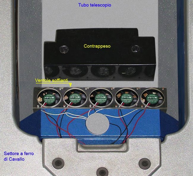 Questo sistema di ventilazione dovrà essere dotato di una regolazione di velocità, magari con un potenziometro a filo di giusto valore, per regolare il numero di giri adatto al seeing della serata.